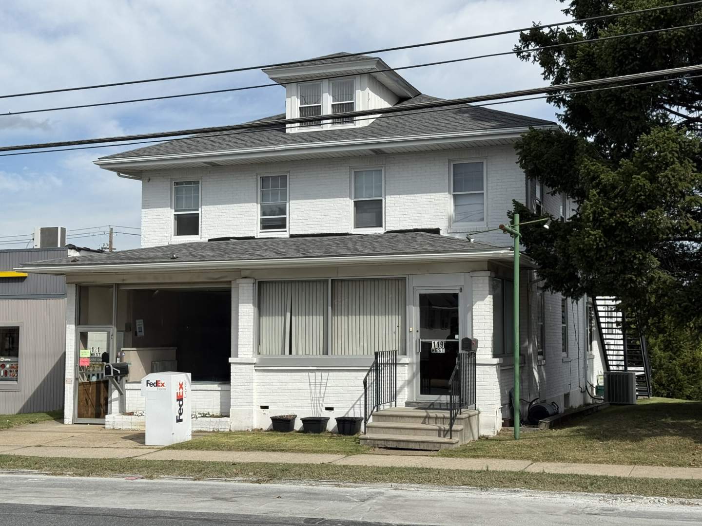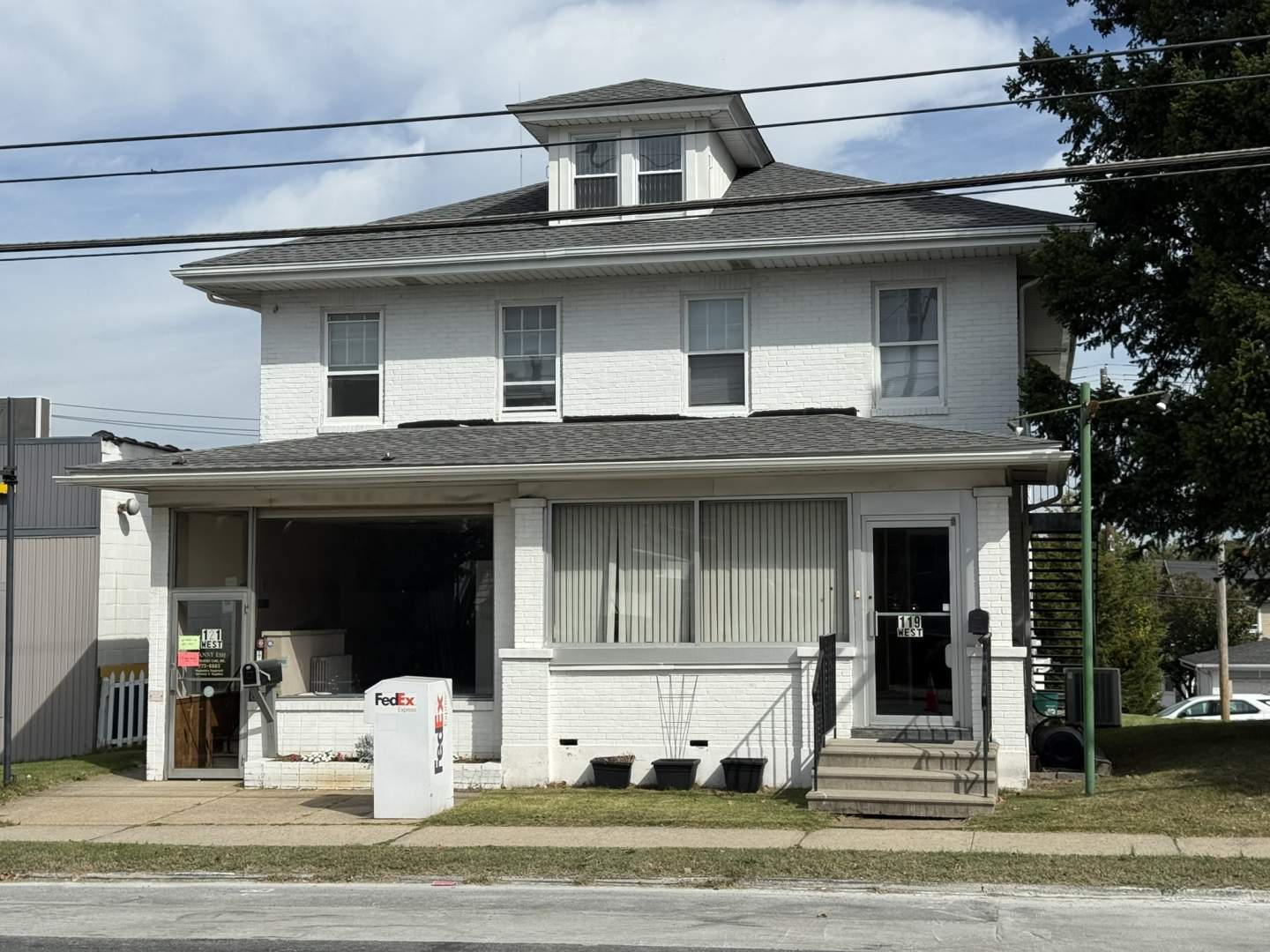 The commercial unit hosted a successful business for many years until recently when the business moved next door for more space. It consists of a storefront, multiple offices, 2 half baths, a full kitchen, storage areas and a full walk-out basement containing tons of room for extra storage. The larger residential unit contains 4 bedrooms, 1 bath and is move in ready. The smaller residential unit is 2 bedrooms, 1 bath and is currently occupied. There is a detached 26’x23′ 3 car garage for extra rental income or storage.