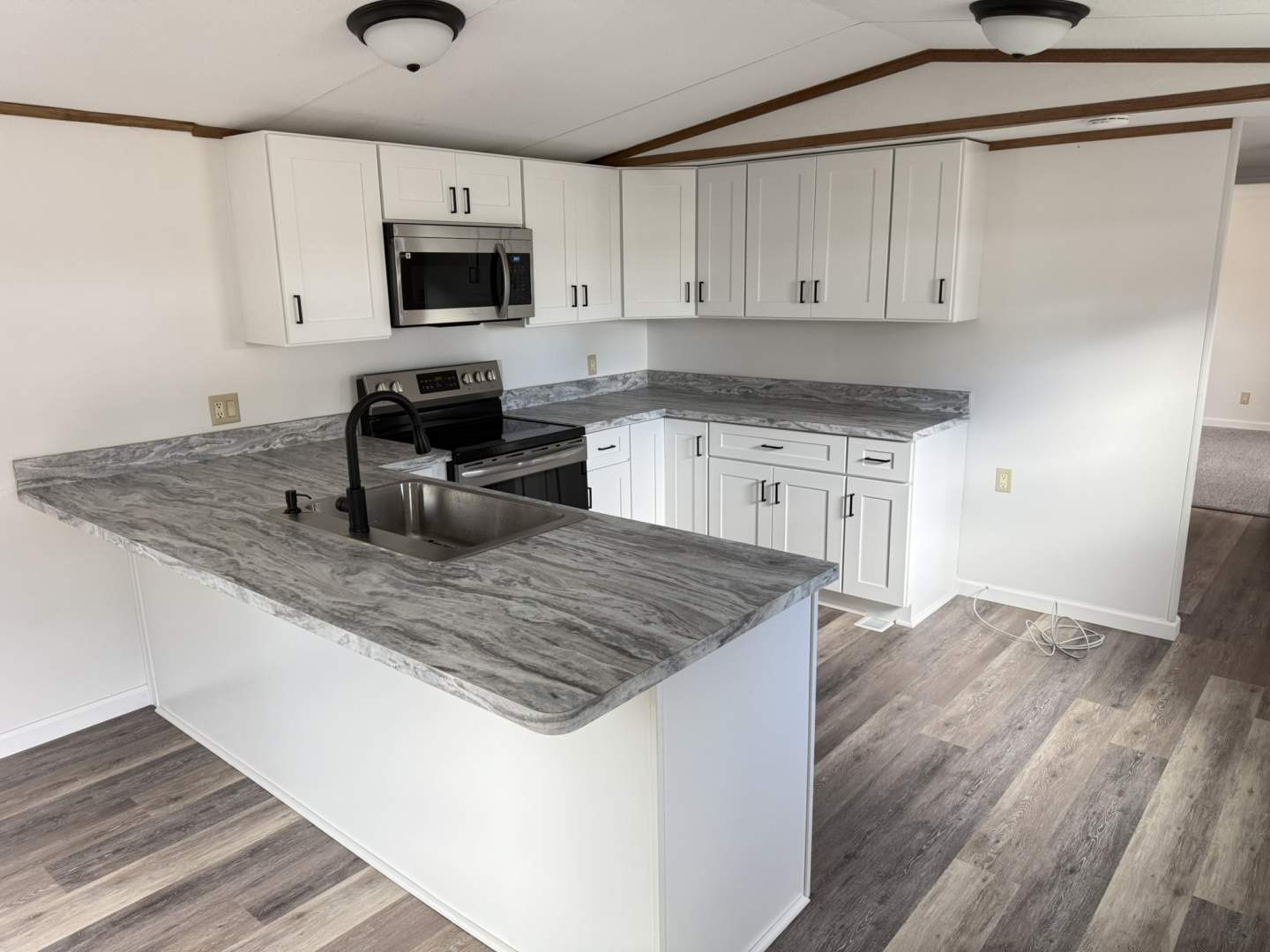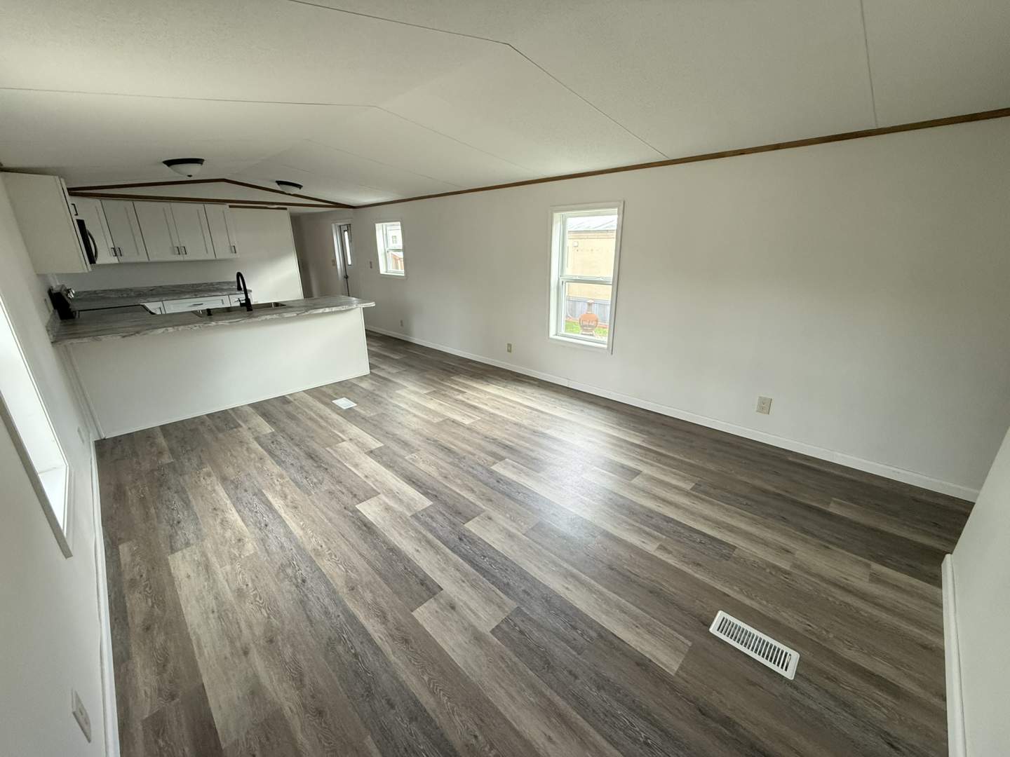 Fully Remodeled 3-Bedroom Home on Corner Lot – Move-In Ready! Don’t miss this beautifully remodeled 3-bedroom home, situated on a spacious corner lot in a quite community where homes rarely become available. Upgrades include a brand-new roof, windows, water heater, skirting, kitchen, bathroom, flooring, and fresh interior paint throughout. The home has an upgraded heat pump with central air. The kitchen is spacious with tons of cabinet and countertop space and includes bar seating. Two of the bedrooms feature walk-in closets, providing plenty of room for storage. Outside there is a large front deck and a storage shed that is included. Located in a friendly, well-maintained community with a low lot rent of just $425/month, which includes water, sewer, and trash.
